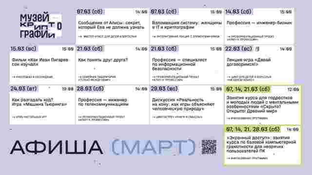 В экспозиции также представлены специально созданные интерактивные, кинетические, мультимедийные и игровые экспонаты, объясняющие простым языком детям и взрослым суть сложных криптографических механизмов и математических понятий.