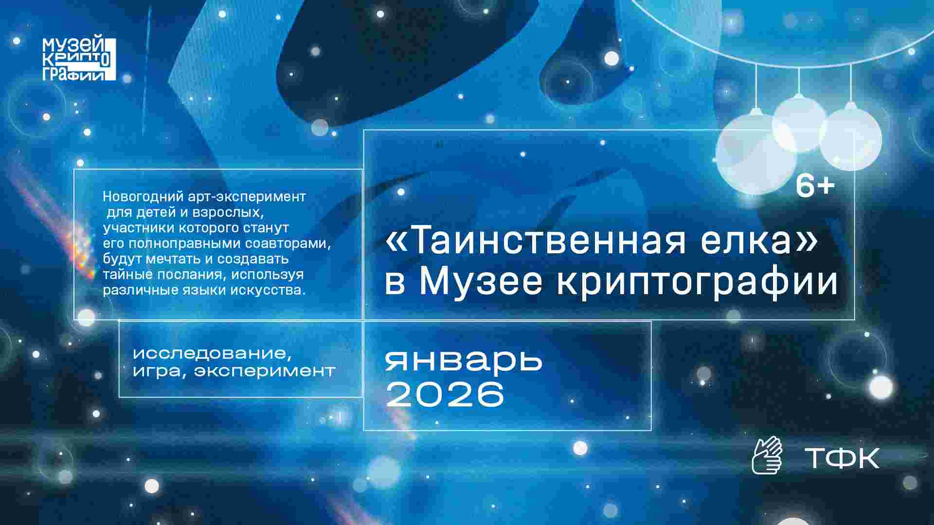 Музей криптографии приглашает всех, кто любит исследовать, экспериментировать, играть и создавать, на иммерсивную «Таинственную елку». Это новогодний арт-эксперимент для взрослых и детей, участники которого станут его полноправными соавторами, будут мечтать и создавать тайные послания, используя различные языки искусства.