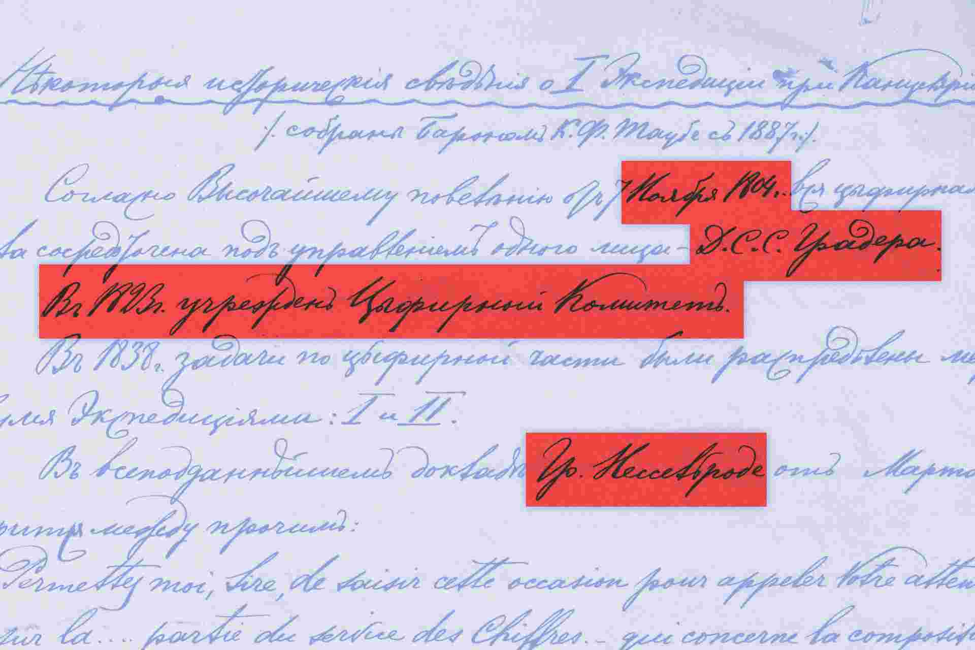 Наиболее достоверной датой официального образования цифирной экспедиции (или экспедиций), находящейся в ведении именно Министерства иностранных дел, можно считать 7 ноября 1804 г. Согласно уникальному архивному документу из АВПРИ «Некоторые исторические сведения о I Экспедиции при Канцелярии М.И.[Д] / Собраны бароном К.Ф. Таубе с 1887 г./», именно 7 ноября согласно высочайшему повелению, «вся цифирная часть была сосредоточена под управлением одного лица действительного статского советника Градера». Важно отметить, что остается под вопросом разделение обязанностей по шифрованию, дешифрованию и перлюстрации переписки между образованным 8 сентября 1802 г. Министерством иностранных дел и Канцелярией, подчиняющейся министру и непосредственно Коллегией иностранных дел и Секретной экспедицией, продолжавшей функционировать. Шифровальный отдел, берущий свое официальное начало с 1709 г. (Посольской канцелярии), уже в 1712 г. превратился в «Первую экспедицию» Коллегии иностранных дел, которая в дальнейшем называлась «Особливой экспедицией» или «Секретной частью». Вопрос, стала ли «цифирная часть» МИД непосредственным преемником той самой «Особливой экспедиции» остается нерешенным. Разные точки зрения позволяют однозначно предположить лишь то, что три секретные экспедиции: первая – цифирная (шифровальная); вторая – цифирная (дешифровальная), третья – газетная (служба перлюстрации), или единая «шифровальная экспедиция», или же «Цифирная часть», подчинялись Канцелярии Министра иностранных дел, образованной в 1803 г. Согласно черновому проекту «О министерской канцелярии», в котором упоминается организация «цифирной экспедиции», «правитель сей Канцелярии отвечает за порядок в оной и за соблюдением тайны; он имеет на своих руках цифири и весь Архив Канцелярский и содержит оный в порядке...», а «экспедиция сия управляется Экспедитором и двумя помощниками». В публикации в журнале «Международная жизнь» не указана дата образования Цифирного комитета. В задачи «организованного в начале XIX в. Цифирного комитета входили: анализ и введение новых шифров, контроль за их правильным использованием и хранением; вывод из действия устаревших или скомпрометированных шифров; составление заключений, отчетов и докладных записок для руководителей МИД и императора по вопросам деятельности шифровальной и дешифровальной служб. Этот комитет подчинялся министру, а возглавлял его “главный член Цифирного комитета’’. Шифрованная переписка велась по политическим, военным, экономическим и другим важнейшим государственным вопросам».