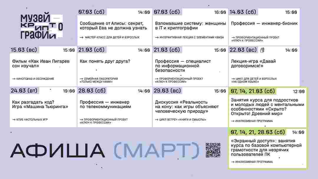 В экспозиции также представлены специально созданные интерактивные, кинетические, мультимедийные и игровые экспонаты, объясняющие простым языком детям и взрослым суть сложных криптографических механизмов и математических понятий.