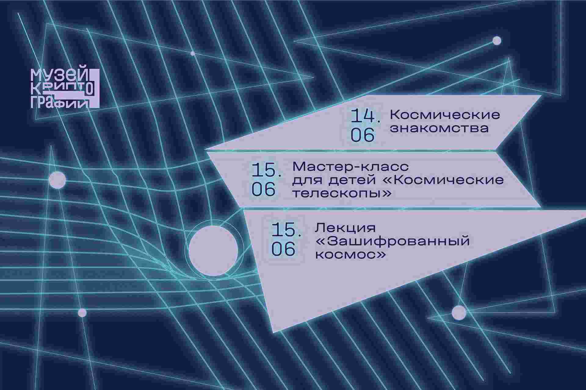 14 и 15 июня в Музее криптографии пройдет Космический уикенд, приуроченный к закрытию выставки «При чем тут космос». В эти дни гостей ждут космические знакомства, лекция и мастер-класс для детей.